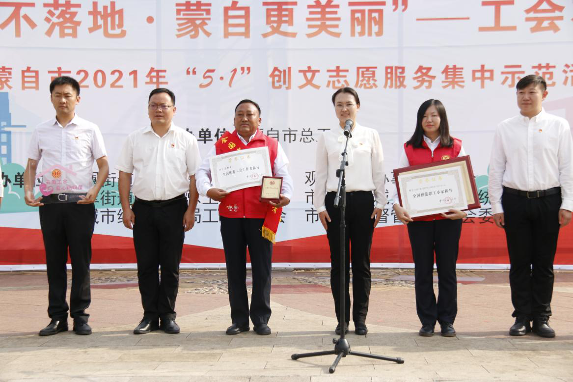 4月30日,蒙自市總工會在南湖廣場開展“煙頭不落地·蒙自更美麗”志愿服務集中示范活動暨“全國模范職工小家”、“全國優(yōu)秀工會工作者”頒獎儀式,...